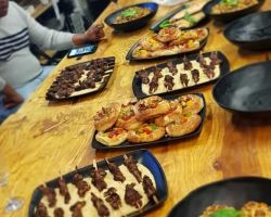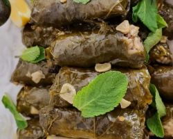 - מג'דרה אסלית מנצרת /אורז פיצוחים מתוקים / עלי גפן ממולאים באורז אגוזים ועשבי תיבול / סלט חומוס וחצילים עם עגבניות ובזיליקום.