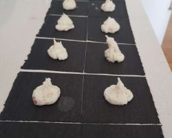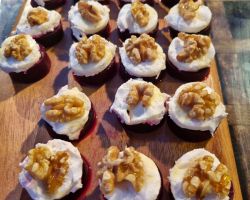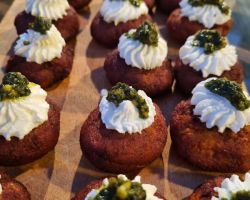 - משולשי פילו במילוי ארטישוק ירושלמי וכמהין / ניוקי סלק בפסטו ארוגולה.