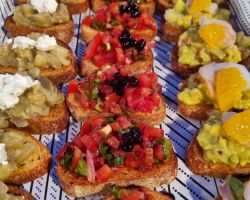 - סביצ'ה דג ים עם אבוקדו והדרים בפאני פורי / טרטר טונה על סלט מלפפונים ג'ינג'ר ונבטי חמניה.