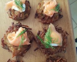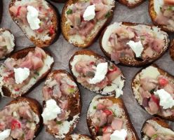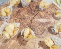 - סביצ'ה דג ים בפאני פורי / קרוקטאס סלמון מעושן ברוטב יוגורט ועירית / פיש אנד צ'יפס.
