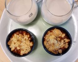 - מרעננים לקיץ – טפיוקה בחלב קוקוס עם סלט פירות/ נקטרינות בסירופ יין לבן וגבינה מתוקה.